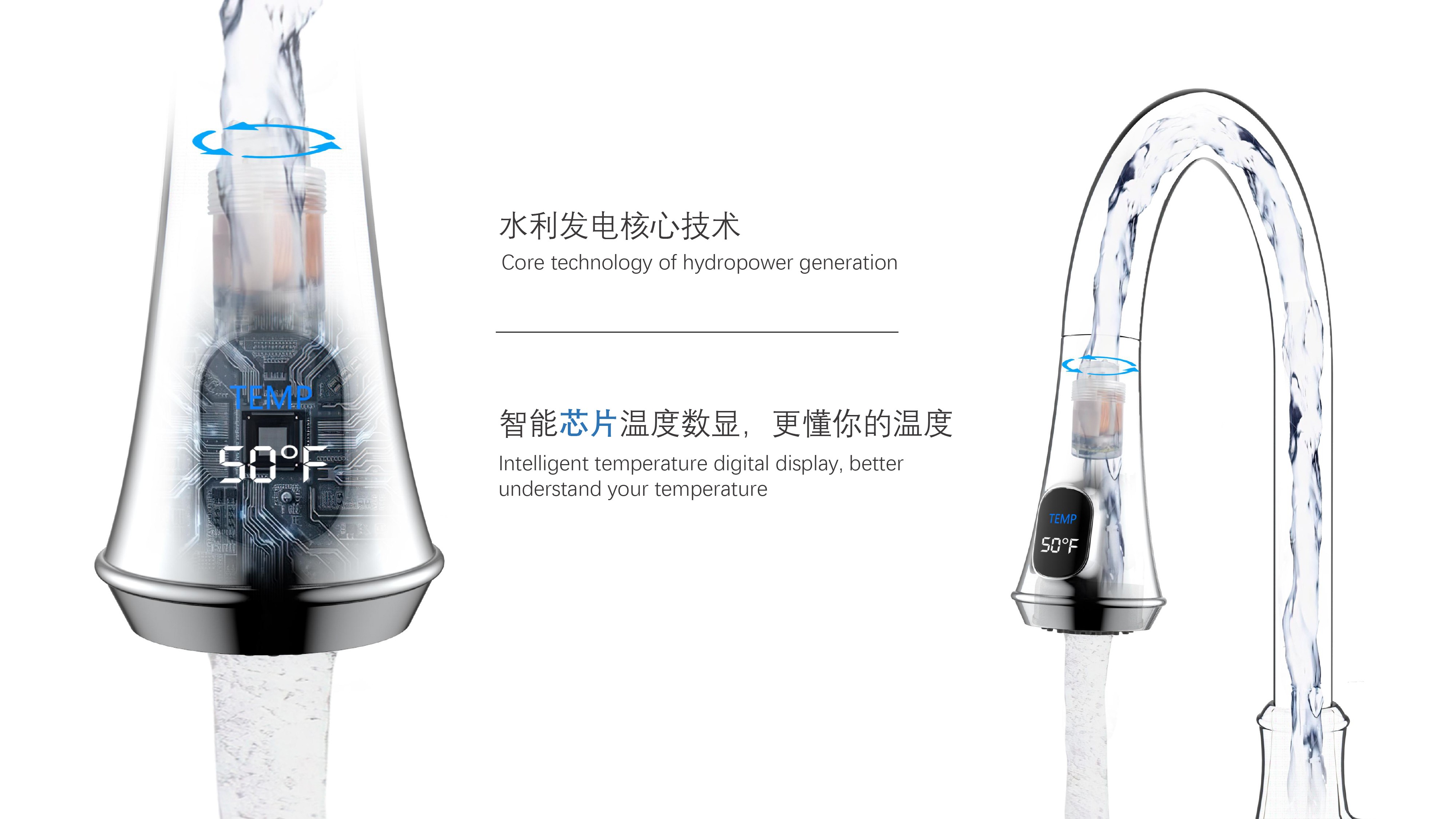 古典廚房龍頭;抽拉頭隨意抽拉多角度使用;采用全密封防水端頭;水力發(fā)電技術(shù),智能芯片溫度數(shù)顯-冷水TEMP顯示藍(lán)色、溫水TEMP顯示綠色、熱水TEMP顯示紅色